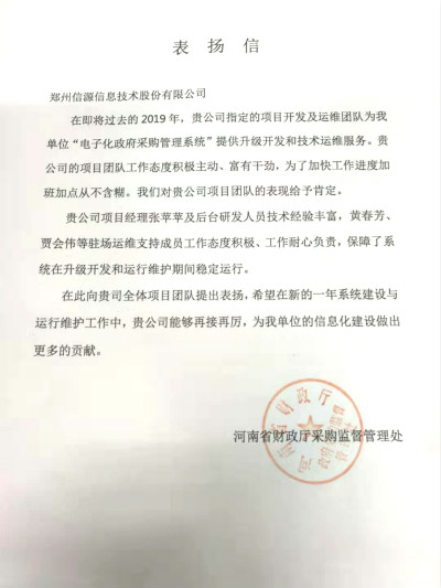 省財(cái)政廳對(duì)信源團(tuán)隊(duì)的感謝信